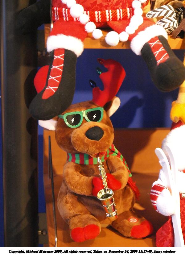 Picture #8: Jazzy reindeer 600x823, 85,927 bytes (84K), (html file) Copyright, Michael Meissner 2009, All rights reserved Olympus E-3 camera with Olympus 14-54mm f/2.8-3.5 lens f/3.4, ISO 2000, 1/80 sec, 47.0mm, auto mode, natural color, matrix metering, IS1 (All Direction Shake IS) 35mm equivalent focal length 94.0mm Programs used: NoiseNinja, gimp Taken by Michael Meissner on December 24, 2009 15:57:49 Last modified on December 25, 2009 at 10:08 |