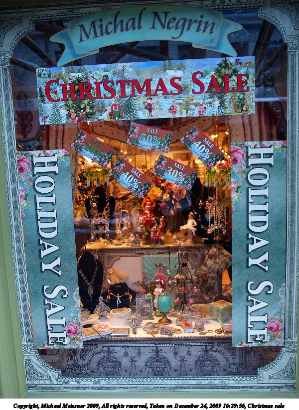 Picture #11: Christmas sale 600x823, 157,595 bytes (154K), (html file) Copyright, Michael Meissner 2009, All rights reserved Olympus E-3 camera with Olympus 14-54mm f/2.8-3.5 lens f/2.8, ISO 400, 1/60 sec, 14.0mm, auto mode, natural color, matrix metering, IS1 (All Direction Shake IS) 35mm equivalent focal length 28.0mm Programs used: gimp Taken by Michael Meissner on December 24, 2009 16:29:56 Last modified on December 25, 2009 at 10:29 |