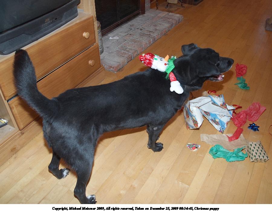 Picture #11: Chrismas puppy 900x698, 104,085 bytes (102K), (html file) Copyright, Michael Meissner 2009, All rights reserved Olympus E-P2 camera with Olympus-m43 14-42mm f/3.5-5.6 lens f/3.6, ISO 200, FL-36 flash, 1/60 sec, 15.0mm, auto mode, natural color, matrix metering, IS1 (All Direction Shake IS), noise reduction auto 35mm equivalent focal length 30.0mm Extra equipment used: FL-36 flash Programs used: gimp Taken by Michael Meissner on December 25, 2009 08:34:45 Last modified on December 31, 2009 at 20:53 |