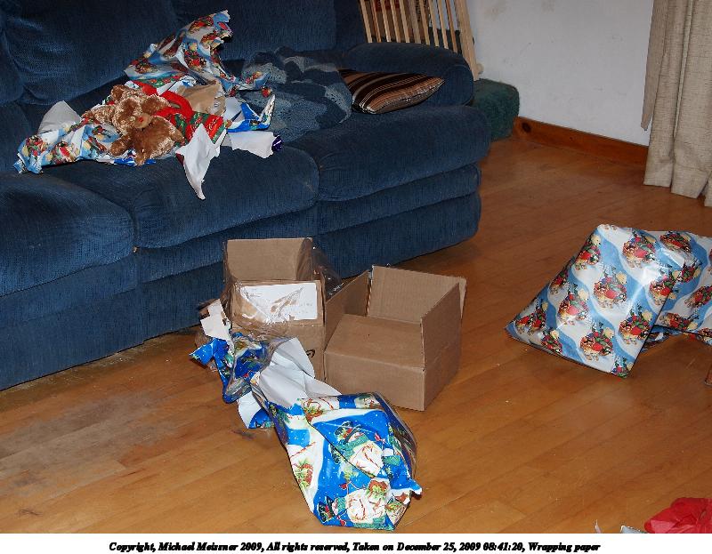 Picture #13: Wrapping paper #2 800x623, 104,038 bytes (102K), (html file) Copyright, Michael Meissner 2009, All rights reserved Olympus E-P2 camera with Olympus-m43 14-42mm f/3.5-5.6 lens f/4.1, ISO 200, FL-36 flash, 1/60 sec, 20.0mm, auto mode, natural color, matrix metering, IS1 (All Direction Shake IS), noise reduction auto 35mm equivalent focal length 40.0mm Extra equipment used: FL-36 flash Programs used: gimp Taken by Michael Meissner on December 25, 2009 08:41:15 Last modified on December 31, 2009 at 20:59 |