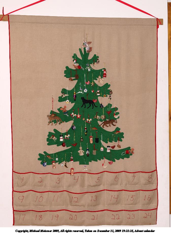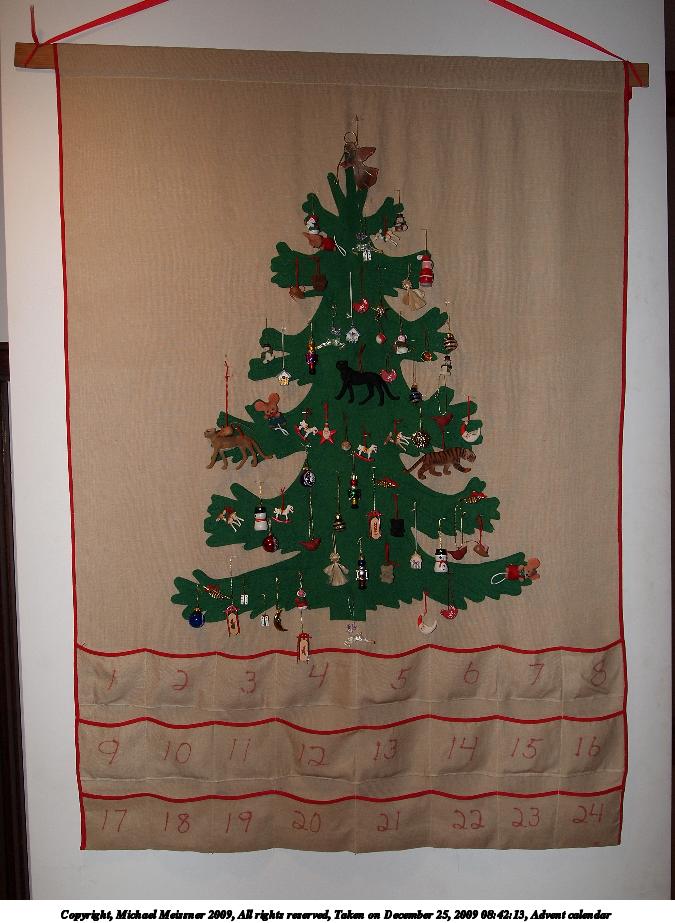 Picture #15: Advent calendar 675x923, 98,790 bytes (97K), (html file) Copyright, Michael Meissner 2009, All rights reserved Olympus E-P2 camera with Olympus-m43 14-42mm f/3.5-5.6 lens f/3.8, ISO 200, FL-36 flash, 1/60 sec, 16.0mm, auto mode, natural color, matrix metering, IS1 (All Direction Shake IS), noise reduction auto 35mm equivalent focal length 32.0mm Extra equipment used: FL-36 flash Programs used: gimp Taken by Michael Meissner on December 25, 2009 08:42:13 Last modified on December 31, 2009 at 21:03 |