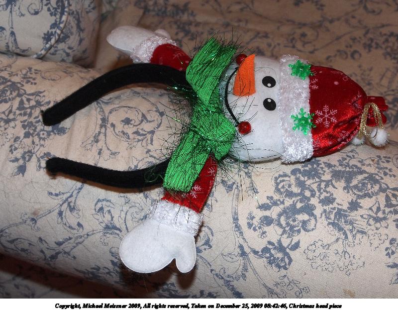 Picture #16: Christmas head piece 800x623, 137,409 bytes (135K), (html file) Copyright, Michael Meissner 2009, All rights reserved Olympus E-P2 camera with Olympus-m43 14-42mm f/3.5-5.6 lens f/4.8, ISO 200, FL-36 flash, 1/60 sec, 30.0mm, auto mode, natural color, matrix metering, IS1 (All Direction Shake IS), noise reduction auto 35mm equivalent focal length 60.0mm Extra equipment used: FL-36 flash Programs used: gimp Taken by Michael Meissner on December 25, 2009 08:42:46 Last modified on December 31, 2009 at 23:46 |