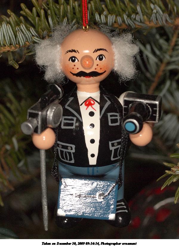 Picture #27: Photographer ornament 600x823, 101,823 bytes (100K), (html file) Olympus E-P2 camera with Olympus 50mm f/2.0 lens f/8.0, ISO 200, Promaster flash, 1/100 sec, 50.0mm, aperture priority, natural color, fine weather with shade (7500K), matrix metering, IS1 (All Direction Shake IS), noise reduction auto 35mm equivalent focal length 100.0mm Extra equipment used: Promaster ring flash Programs used: gimp Taken by Michael Meissner on December 30, 2009 09:14:14 Last modified on January 01, 2010 at 00:54 |