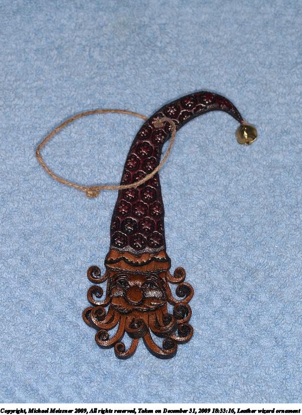 Picture #36: Leather wizard ornament 600x823, 128,015 bytes (126K), (html file) Copyright, Michael Meissner 2009, All rights reserved Olympus E-3 camera with Olympus 50mm f/2.0 lens f/5.6, ISO 100, Promaster flash, 1/100 sec, 50.0mm, aperture priority, natural color, matrix metering, IS1 (All Direction Shake IS) 35mm equivalent focal length 100.0mm Extra equipment used: Promaster ring flash Programs used: gimp Taken by Michael Meissner on December 31, 2009 18:33:16 Last modified on January 01, 2010 at 10:32 |