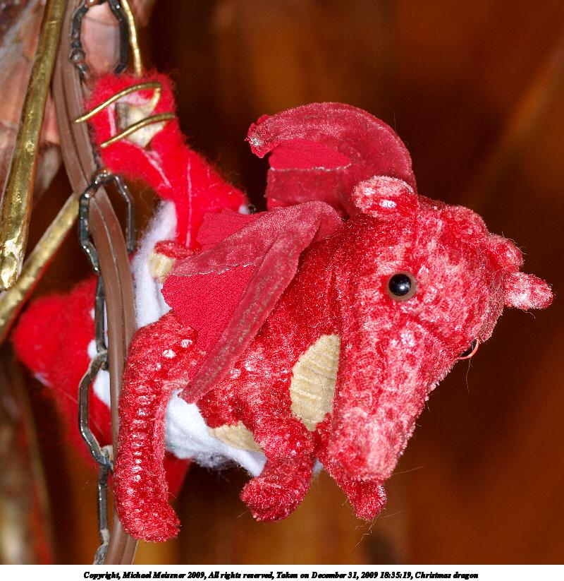 Picture #39: Chrismas dragons 900x698, 110,664 bytes (109K), (html file) Copyright, Michael Meissner 2009, All rights reserved Olympus E-3 camera with Olympus 50mm f/2.0 lens f/5.6, ISO 100, Promaster flash, 1/100 sec, 50.0mm, aperture priority, natural color, matrix metering, IS1 (All Direction Shake IS) 35mm equivalent focal length 100.0mm Extra equipment used: Promaster ring flash Programs used: gimp Taken by Michael Meissner on December 31, 2009 18:34:58 Last modified on January 01, 2010 at 10:39 |