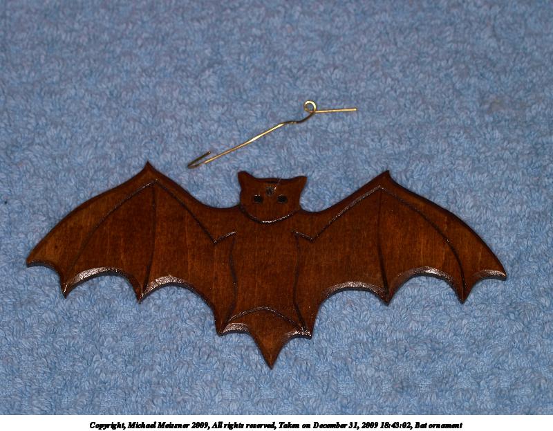Picture #44: Bat ornament 800x623, 103,241 bytes (101K), (html file) Copyright, Michael Meissner 2009, All rights reserved Olympus E-3 camera with Olympus 50mm f/2.0 lens f/5.6, ISO 100, Promaster flash, 1/100 sec, 50.0mm, aperture priority, natural color, matrix metering, IS1 (All Direction Shake IS) 35mm equivalent focal length 100.0mm Extra equipment used: Promaster ring flash Programs used: gimp Taken by Michael Meissner on December 31, 2009 18:43:02 Last modified on January 01, 2010 at 20:26 |