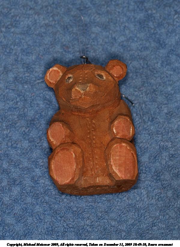 Picture #51: Bearn ornament 600x823, 99,396 bytes (98K), (html file) Copyright, Michael Meissner 2009, All rights reserved Olympus E-3 camera with Olympus 50mm f/2.0 lens f/5.6, ISO 100, Promaster flash, 1/100 sec, 50.0mm, aperture priority, natural color, matrix metering, IS1 (All Direction Shake IS) 35mm equivalent focal length 100.0mm Extra equipment used: Promaster ring flash Programs used: gimp Taken by Michael Meissner on December 31, 2009 18:49:10 Last modified on January 01, 2010 at 20:41 |
