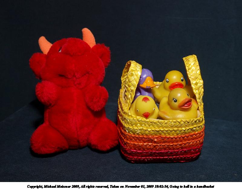 Picture #12: Going to hell in a handbasket 800x623, 75,774 bytes (74K), (html file) Copyright, Michael Meissner 2009, All rights reserved Olympus E-3 camera with Olympus 14-54mm f/2.8-3.5 lens f/5.6, ISO 100, FL-36 flash, 1/60 sec, 23.0mm, aperture priority, natural color, matrix metering, IS1 (All Direction Shake IS) 35mm equivalent focal length 46.0mm Extra equipment used: FL-36, Flip-it Programs used: gimp Taken by Michael Meissner on November 01, 2009 18:02:54 Last modified on November 01, 2009 at 18:51 |