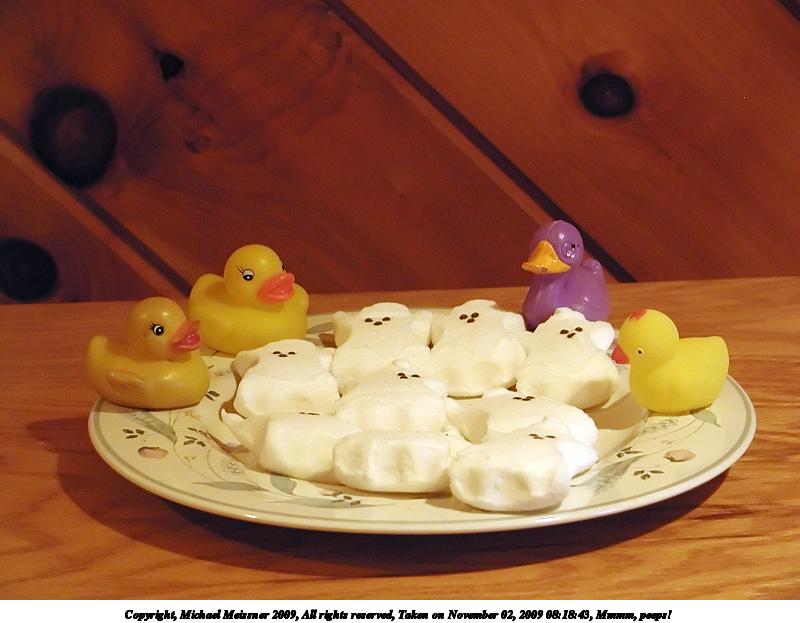Picture #4: Mmmm, peeps! 800x623, 57,183 bytes (56K), (html file) Copyright, Michael Meissner 2009, All rights reserved Olympus C-2100UZ camera f/2.8, ISO 100, 1/80 sec, 17.3mm, auto mode, SHQ, cloudy, matrix metering 35mm equivalent focal length 96.0mm Extra equipment used: Promaster 5750DX flash Programs used: gimp Taken by Michael Meissner on November 02, 2009 08:18:17 Last modified on November 02, 2009 at 09:13 |