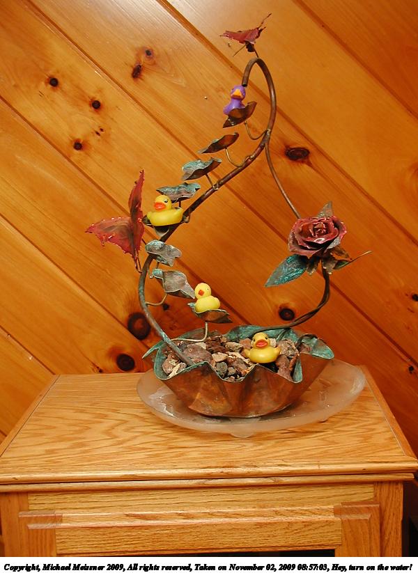Picture #2: Hey, turn on the water! 600x823, 86,465 bytes (85K), (html file) Copyright, Michael Meissner 2009, All rights reserved Olympus C-2100UZ camera f/2.8, ISO 100, 1/40 sec, 8.6mm, auto mode, SHQ, cloudy, matrix metering 35mm equivalent focal length 48.0mm Extra equipment used: Promaster 5750DX flash Programs used: gimp Taken by Michael Meissner on November 02, 2009 08:57:03 Last modified on November 02, 2009 at 09:17 I tried to fill and turn on the fountain for the ducks, but I couldn't get it started. |