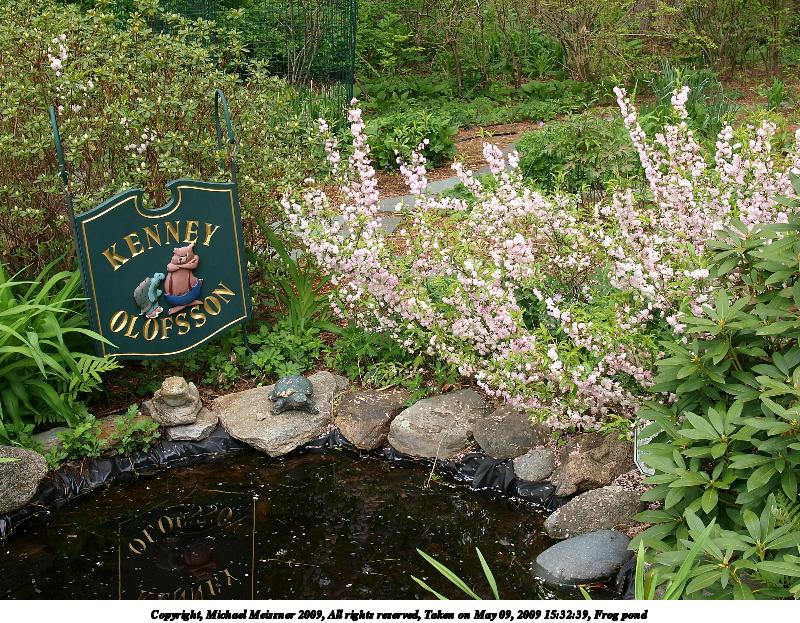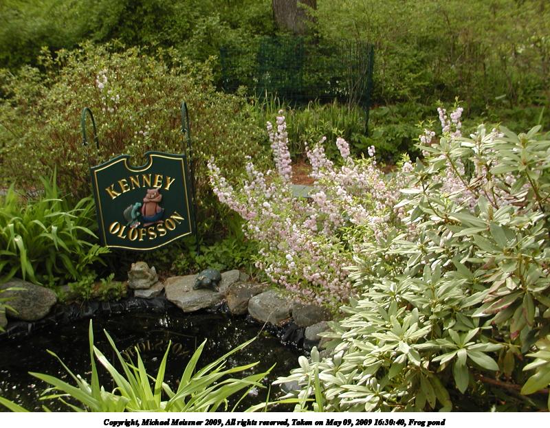 Picture #12: Frog pond Thumb: 400x300, 80,869 bytes (79K) Small: 800x623, 220,542 bytes (216K), (html file) Copyright, Michael Meissner 2009, All rights reserved Olympus E-3 camera with Olympus 14-54mm f/2.8-3.5 lens f/5.6, ISO 100, 1/60 sec, 22.0mm, aperture priority, natural color, matrix metering, bias 0.3, IS1 (All Direction Shake IS) 35mm equivalent focal length 44.0mm Programs used: gimp Taken by Michael Meissner on May 09, 2009 15:32:39 Last modified on July 27, 2009 at 08:20 |