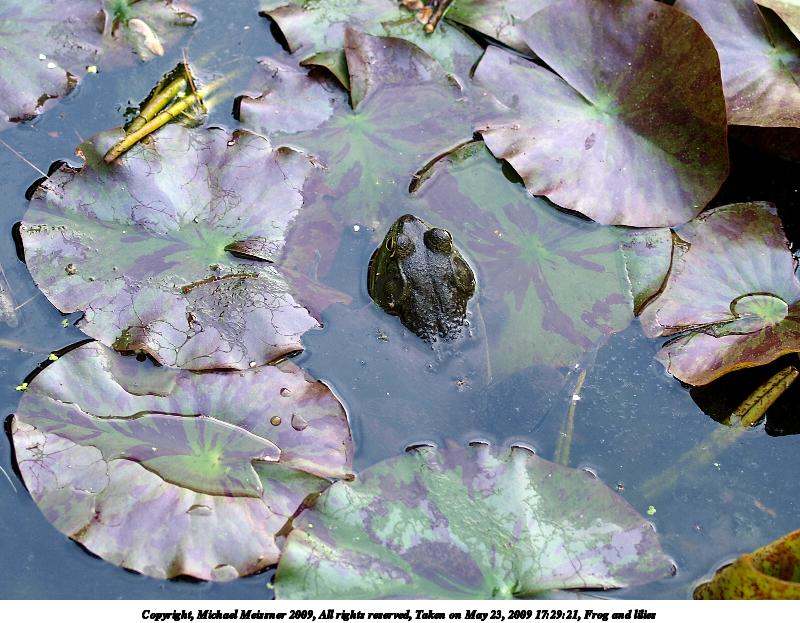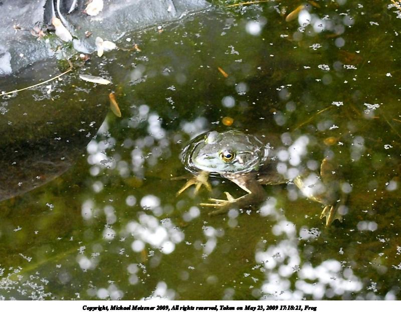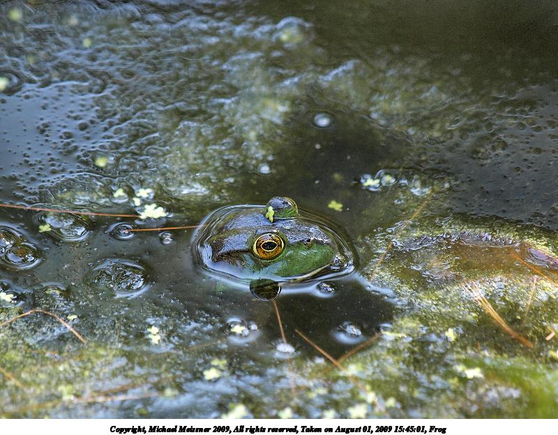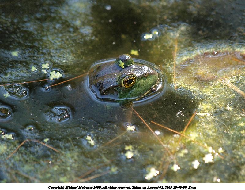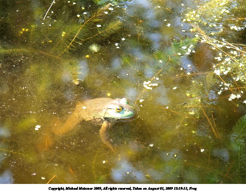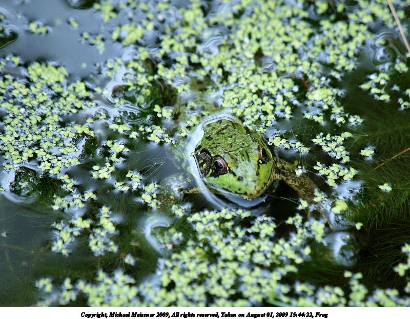 Picture #8: Frog #7 Thumb: 400x300, 51,424 bytes (51K) Small: 800x623, 128,040 bytes (126K), (html file) Copyright, Michael Meissner 2009, All rights reserved Olympus E-3 camera with Olympus 14-54mm f/2.8-3.5 lens f/4.0, ISO 100, 1/125 sec, 54.0mm, auto mode, natural color, auto gradation, SHQ, center weight metering, IS1 (All Direction Shake IS), noise filter low 35mm equivalent focal length 108.0mm Programs used: gimp Taken by Michael Meissner on August 01, 2009 15:34:19 Last modified on August 27, 2009 at 09:01 |