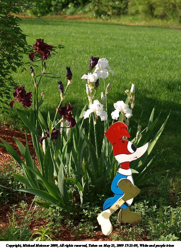 Picture #29: White and purple irises Thumb: 300x400, 79,944 bytes (79K) Small: 600x823, 173,968 bytes (170K), (html file) Copyright, Michael Meissner 2009, All rights reserved Olympus E-3 camera with Olympus 50mm f/2.0 lens f/4.0, ISO 100, 1/500 sec, 50.0mm, auto mode, natural color, matrix metering, IS1 (All Direction Shake IS) 35mm equivalent focal length 100.0mm Programs used: gimp, rotate Taken by Michael Meissner on May 23, 2009 17:22:55 Last modified on August 01, 2009 at 22:50 |