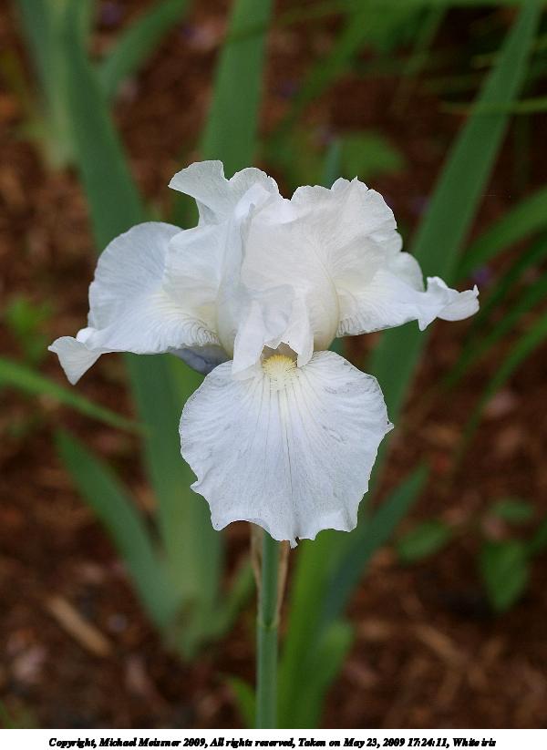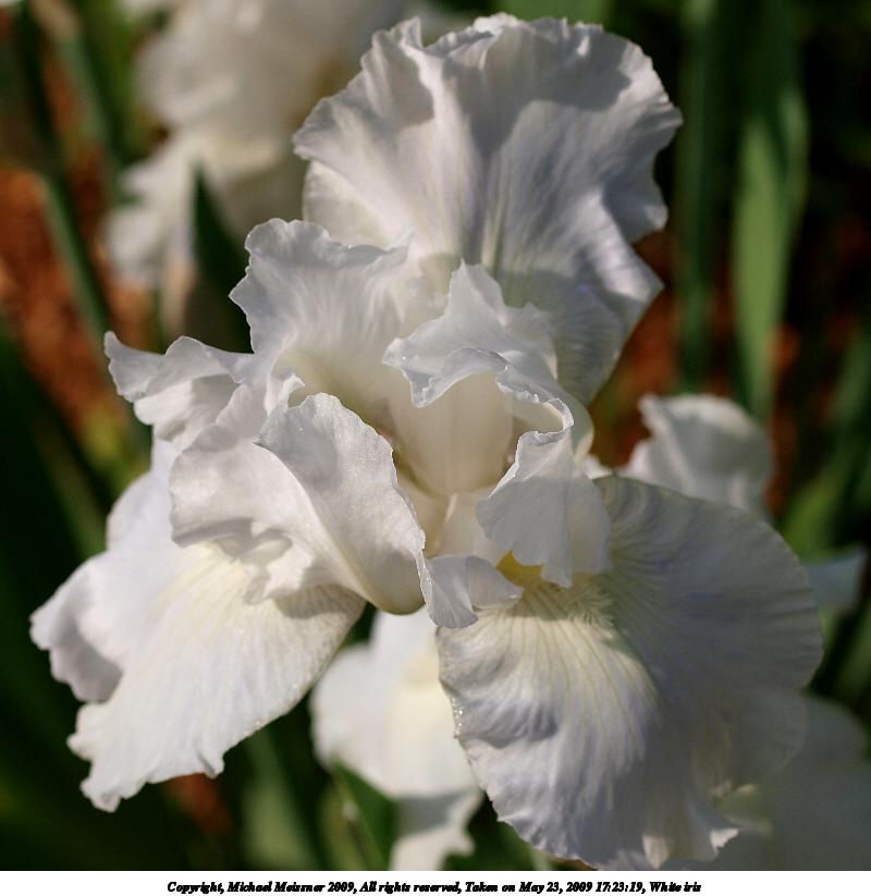 Picture #33: White iris #2 Thumb: 300x400, 42,822 bytes (42K) Small: 600x823, 69,935 bytes (69K), (html file) Copyright, Michael Meissner 2009, All rights reserved Olympus E-3 camera with Olympus 50mm f/2.0 lens f/3.2, ISO 100, 1/250 sec, 50.0mm, auto mode, natural color, matrix metering, IS1 (All Direction Shake IS) 35mm equivalent focal length 100.0mm Programs used: gimp, rotate Taken by Michael Meissner on May 23, 2009 17:24:11 Last modified on August 01, 2009 at 22:59 |