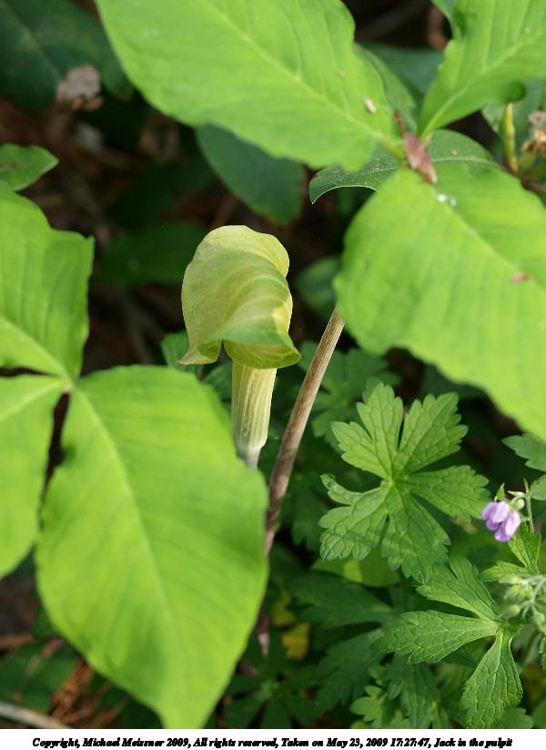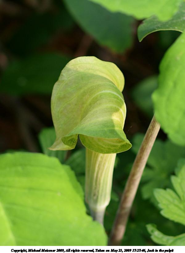 Picture #35: Jack in the pulpit #2 Thumb: 300x400, 50,559 bytes (50K) Small: 600x823, 82,427 bytes (81K), (html file) Copyright, Michael Meissner 2009, All rights reserved Olympus E-3 camera with Olympus 50mm f/2.0 lens f/2.0, ISO 100, 1/125 sec, 50.0mm, auto mode, natural color, matrix metering, IS1 (All Direction Shake IS) 35mm equivalent focal length 100.0mm Programs used: gimp, rotate Taken by Michael Meissner on May 23, 2009 17:27:47 Last modified on August 01, 2009 at 23:04 |