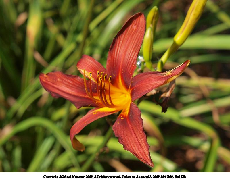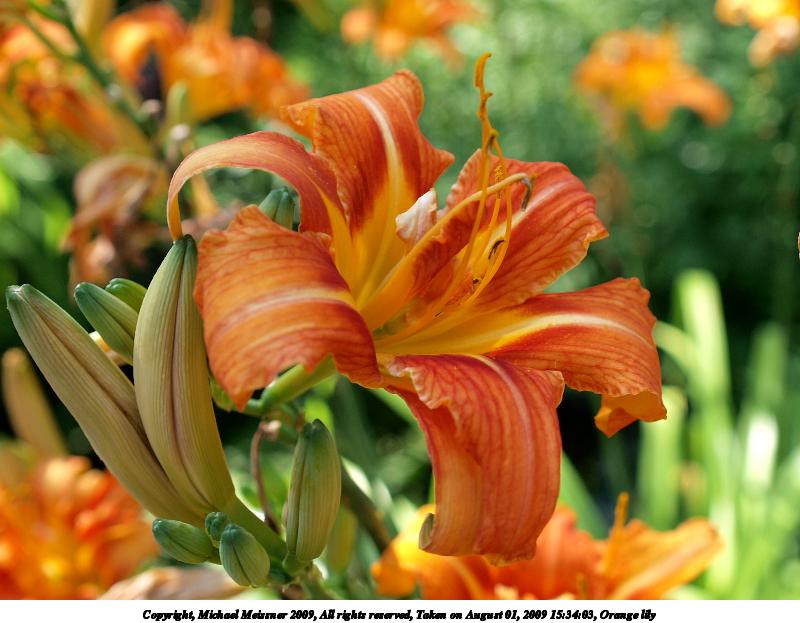 Picture #67: Orange lily Thumb: 400x300, 43,167 bytes (43K) Small: 800x623, 79,674 bytes (78K), (html file) Copyright, Michael Meissner 2009, All rights reserved Olympus E-3 camera with Olympus 14-54mm f/2.8-3.5 lens f/4.0, ISO 100, 1/125 sec, 27.0mm, auto mode, natural color, auto gradation, SHQ, center weight metering, IS1 (All Direction Shake IS), noise filter low 35mm equivalent focal length 54.0mm Programs used: gimp Taken by Michael Meissner on August 01, 2009 15:34:03 Last modified on August 27, 2009 at 08:57 |