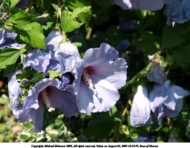 Picture #84: Rose of Sharon Thumb: 400x300, 47,037 bytes (46K) Small: 800x623, 101,439 bytes (100K), (html file) Copyright, Michael Meissner 2009, All rights reserved Olympus E-3 camera with Olympus 14-54mm f/2.8-3.5 lens f/5.6, ISO 100, 1/320 sec, 54.0mm, auto mode, natural color, auto gradation, SHQ, center weight metering, IS1 (All Direction Shake IS), noise filter low 35mm equivalent focal length 108.0mm Programs used: gimp Taken by Michael Meissner on August 01, 2009 15:37:57 Last modified on September 05, 2009 at 09:24 |