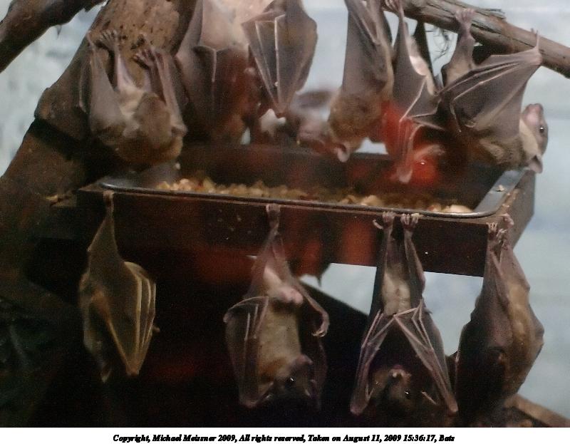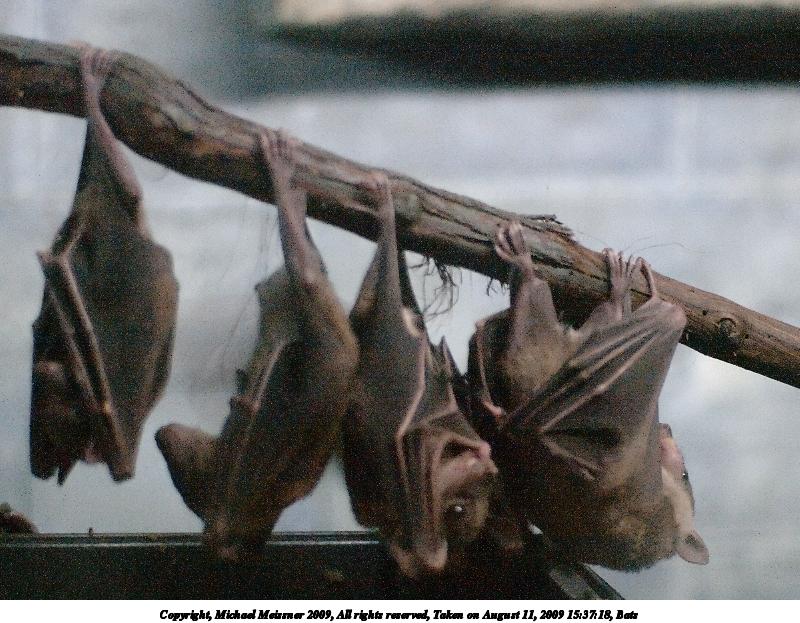 Picture #29: Bats #4 800x623, 105,528 bytes (104K), (html file) Copyright, Michael Meissner 2009, All rights reserved Olympus E-3 camera with Sigma 30mm f/1.4 lens f/1.4, ISO 3200, 1/20 sec, 30.0mm, auto mode, natural color, auto gradation, SHQ, matrix metering, IS1 (All Direction Shake IS), noise filter low 35mm equivalent focal length 60.0mm Programs used: NoiseNinja, RAW, gimp Taken by Michael Meissner on August 11, 2009 15:36:58 Last modified on October 17, 2009 at 11:53 |
