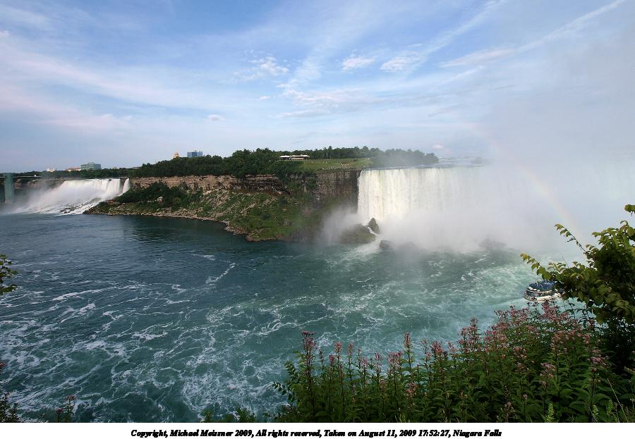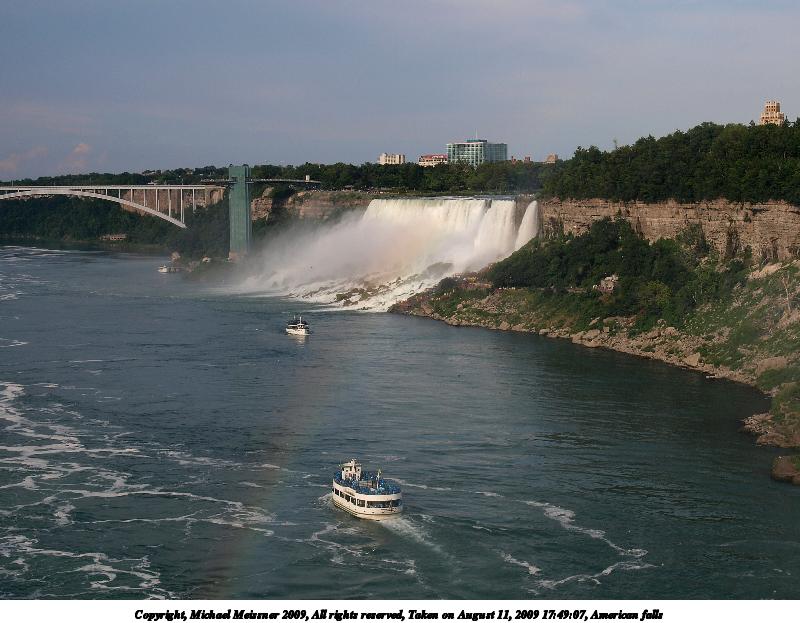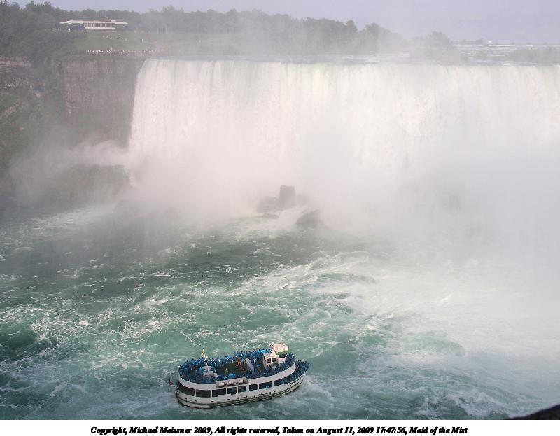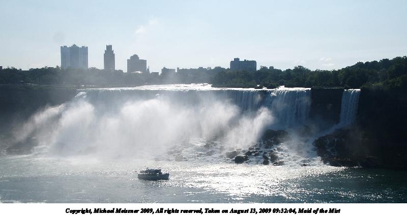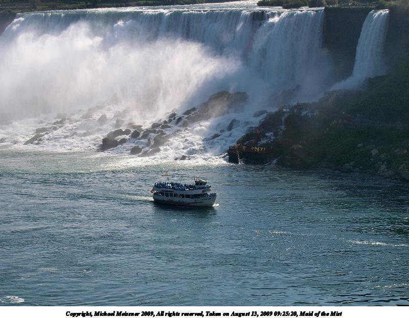 Picture #64: The Maid of the Mist boat ride 800x623, 83,965 bytes (82K), (html file) Copyright, Michael Meissner 2009, All rights reserved Olympus E-1 camera with Olympus 11-22mm f/2.8-3.5 lens f/9.0, ISO 100, 1/320 sec, 11.0mm, auto mode, SHQ, matrix metering, +2 contrast, +2 sharpening 35mm equivalent focal length 22.0mm Programs used: gimp Taken by Michael Meissner on August 13, 2009 09:51:14 Last modified on September 30, 2009 at 07:47 |