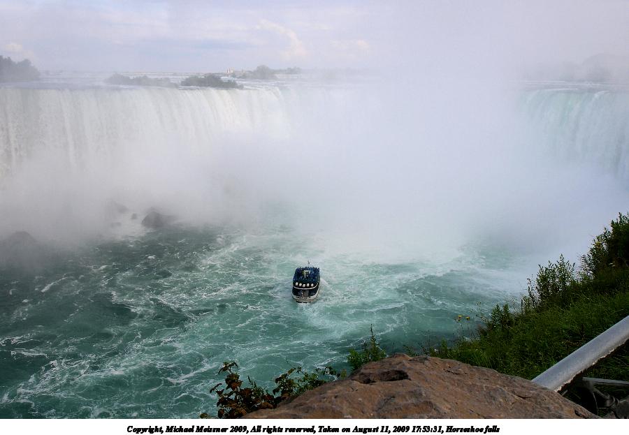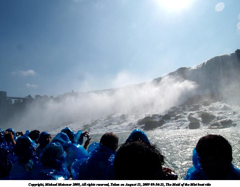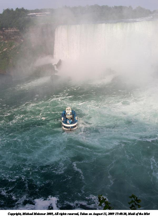 Picture #47: You will get wet on the Maid of the Mist 800x623, 65,505 bytes (64K), (html file) Copyright, Michael Meissner 2009, All rights reserved Olympus E-1 camera with Olympus 11-22mm f/2.8-3.5 lens f/9.0, ISO 100, 1/400 sec, 11.0mm, auto mode, SHQ, matrix metering, +2 contrast, +2 sharpening 35mm equivalent focal length 22.0mm Programs used: gimp Taken by Michael Meissner on August 13, 2009 09:59:39 Last modified on October 02, 2009 at 08:42 This picture is one of my favorites. |