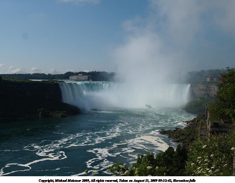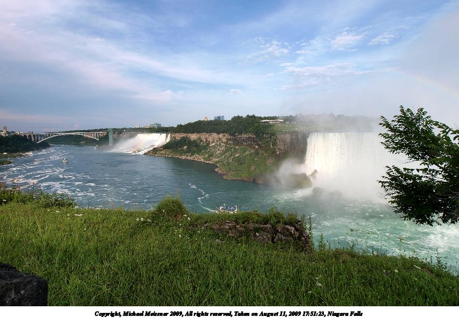 Picture #45: Horeshoe falls #2 900x698, 75,037 bytes (74K), (html file) Copyright, Michael Meissner 2009, All rights reserved Olympus E-3 camera with Olympus 50-200mm f/2.8-3.5 lens f/5.6, ISO 100, 1/500 sec, 50.0mm, auto mode, natural color, auto gradation, SHQ, matrix metering, IS1 (All Direction Shake IS), noise filter low 35mm equivalent focal length 100.0mm Extra equipment used: polarizer Programs used: gimp Taken by Michael Meissner on August 13, 2009 10:05:08 Last modified on October 02, 2009 at 08:45 |