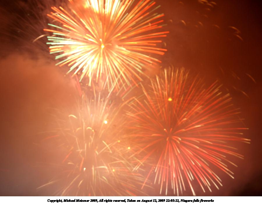 Picture #76: Niagara falls fireworks #4 900x698, 58,518 bytes (58K), (html file) Copyright, Michael Meissner 2009, All rights reserved Olympus E-3 camera with Olympus 14-54mm f/2.8-3.5 lens f/5.6, ISO 100, 3.6 sec, 17.0mm, bulb mode, natural color, SHQ, matrix metering, manual focus, noise filter low 35mm equivalent focal length 34.0mm Extra equipment used: tripod, wired shutter release Programs used: gimp Taken by Michael Meissner on August 12, 2009 22:00:06 Last modified on September 29, 2009 at 21:52 This picture is one of my favorites. |