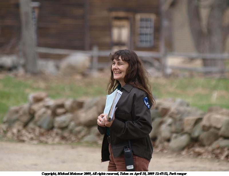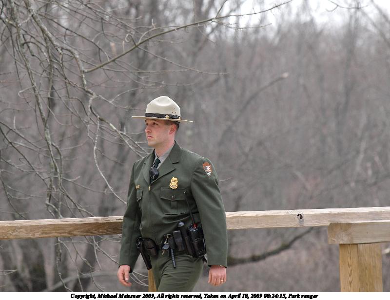Picture #52: Park ranger #2 600x816, 105,294 bytes (103K), (html file) Copyright, Michael Meissner 2009, All rights reserved Olympus E-3 camera with Olympus 50-200mm f/2.8-3.5 lens and Olympus EC-14 (1.4x) f/4.5, ISO 100, 1/320 sec, 174.0mm, auto mode, natural color, matrix metering, IS1 (All Direction Shake IS) 35mm equivalent focal length 349.0mm, EC-14 Programs used: gimp, rotate Taken by Michael Meissner on April 18, 2009 13:03:42 Last modified on May 07, 2009 at 08:27 |