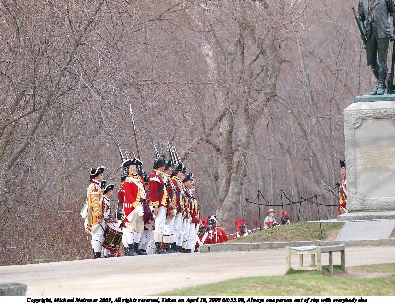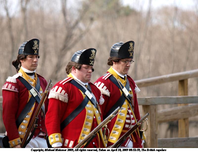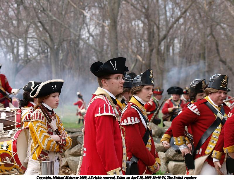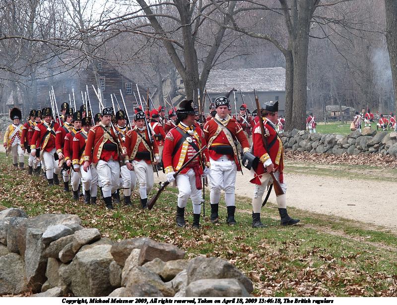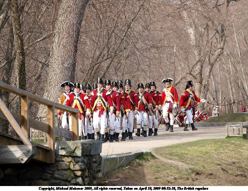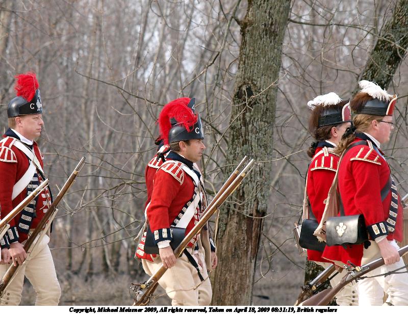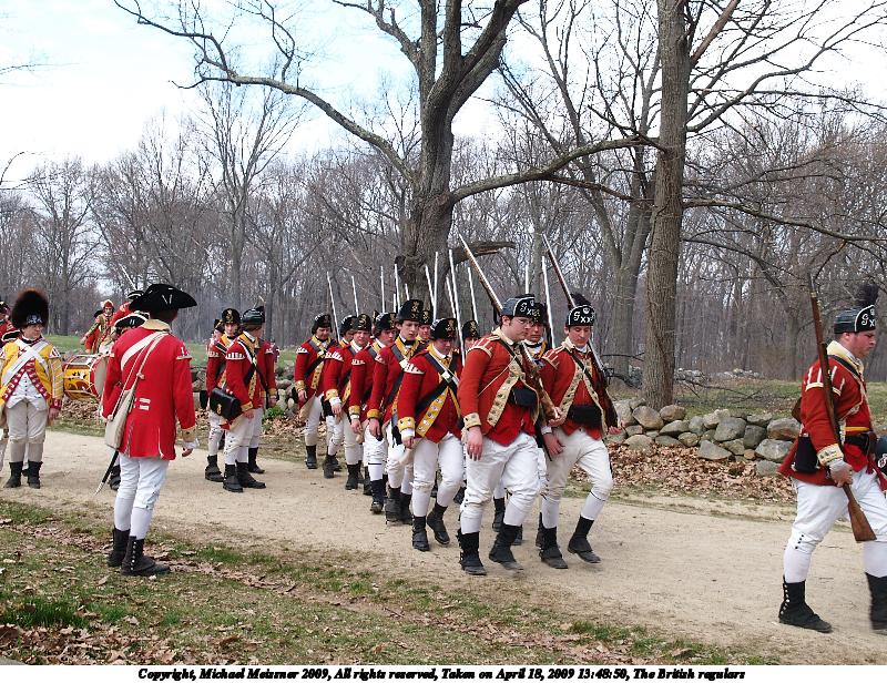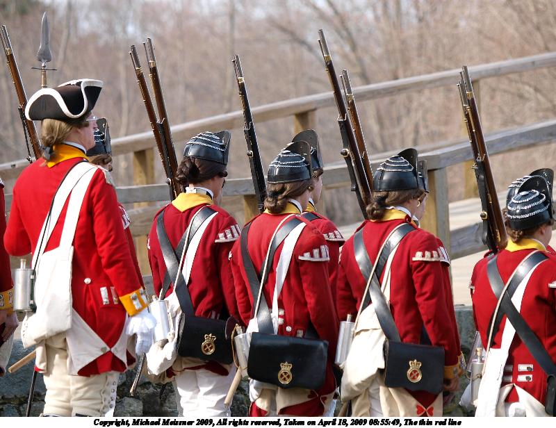 Picture #21: The British regulars #6 800x616, 112,847 bytes (111K), (html file) Copyright, Michael Meissner 2009, All rights reserved Olympus E-3 camera with Olympus 50-200mm f/2.8-3.5 lens and Olympus EC-14 (1.4x) f/4.5, ISO 100, 1/200 sec, 70.0mm, auto mode, natural color, matrix metering, IS1 (All Direction Shake IS) 35mm equivalent focal length 140.0mm, EC-14 Programs used: gimp Taken by Michael Meissner on April 18, 2009 13:46:54 Last modified on May 13, 2009 at 23:53 |
