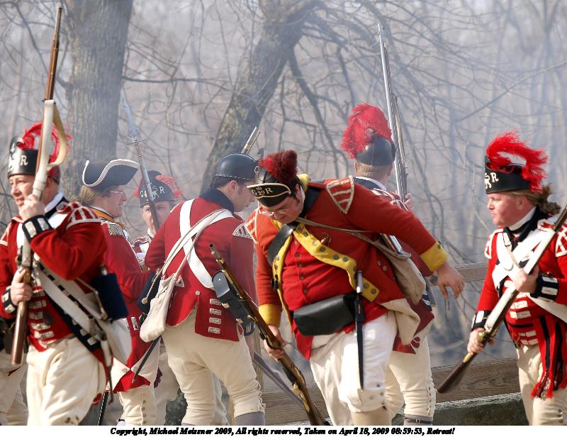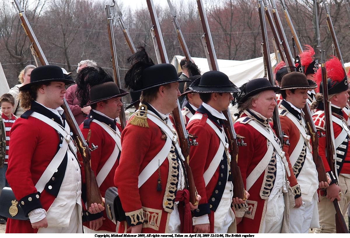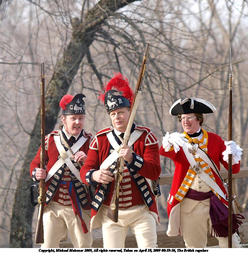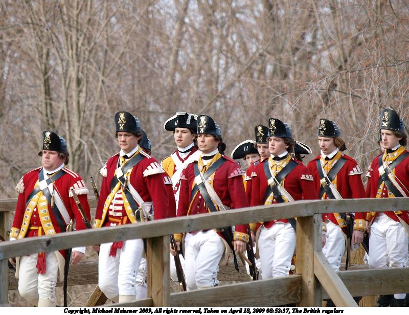 Picture #72: The British regulars #2 1000x766, 183,287 bytes (179K), (html file) Copyright, Michael Meissner 2009, All rights reserved Olympus E-1 camera with Olympus 14-54mm f/2.8-3.5 lens f/9.0, ISO 100, 1/320 sec, 14.0mm, auto mode, SHQ, matrix metering, +2 contrast, +2 sharpening 35mm equivalent focal length 28.0mm Taken by Michael Meissner on April 18, 2009 12:33:26 Last modified on April 29, 2009 at 07:42 |