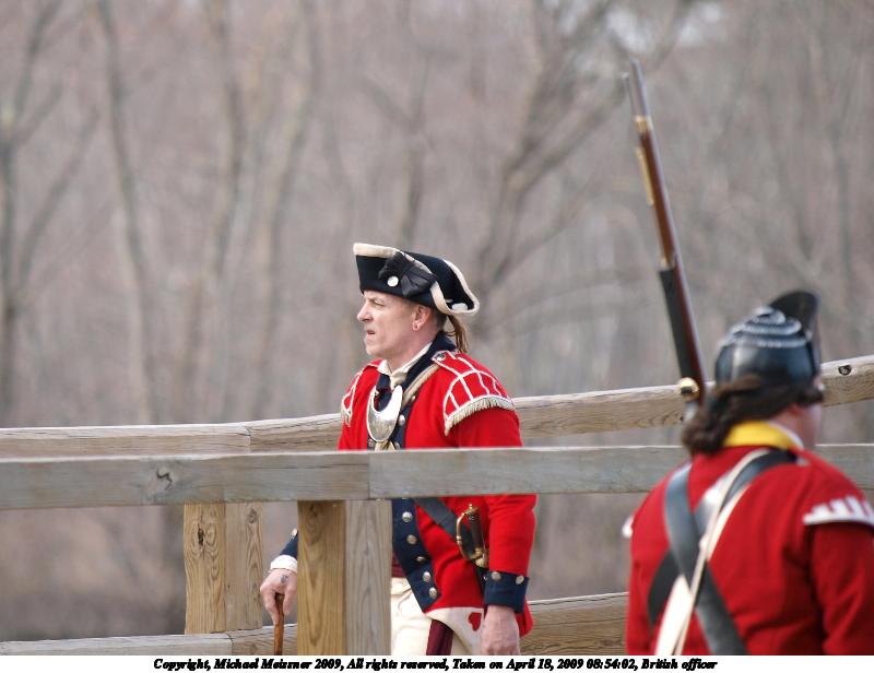 Picture #120: British officer 800x616, 66,203 bytes (65K), (html file) Copyright, Michael Meissner 2009, All rights reserved Olympus E-3 camera with Olympus 50-200mm f/2.8-3.5 lens f/3.5, ISO 125, 1/250 sec, 200.0mm, auto mode, natural color, matrix metering, bias 0.3, IS1 (All Direction Shake IS) 35mm equivalent focal length 401.0mm Programs used: gimp Taken by Michael Meissner on April 18, 2009 08:54:02 Last modified on April 24, 2009 at 07:49 |