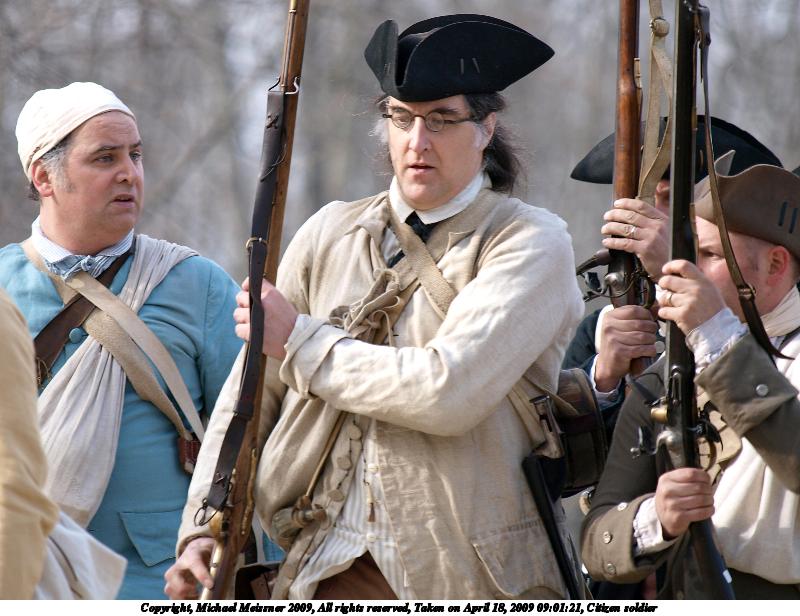 Picture #99: Citizen soldier 800x616, 94,204 bytes (92K), (html file) Copyright, Michael Meissner 2009, All rights reserved Olympus E-3 camera with Olympus 50-200mm f/2.8-3.5 lens f/3.5, ISO 100, 1/250 sec, 200.0mm, auto mode, natural color, matrix metering, bias 0.3, IS1 (All Direction Shake IS) 35mm equivalent focal length 401.0mm Programs used: gimp Taken by Michael Meissner on April 18, 2009 09:01:21 Last modified on April 24, 2009 at 08:34 |