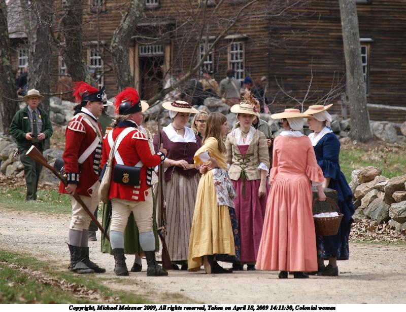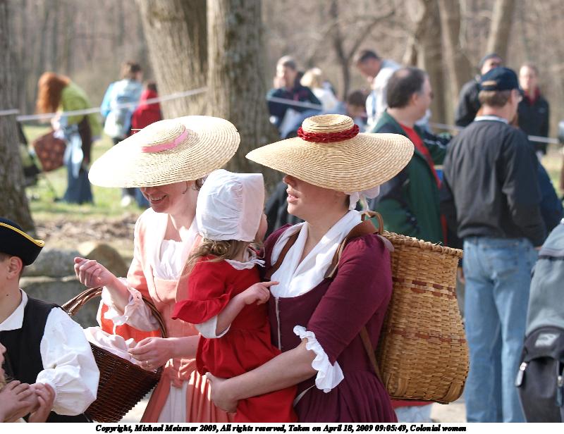Picture #94: Colonial women 800x616, 96,035 bytes (94K), (html file) Copyright, Michael Meissner 2009, All rights reserved Olympus E-3 camera with Olympus 50-200mm f/2.8-3.5 lens f/3.5, ISO 100, 1/250 sec, 67.0mm, auto mode, natural color, matrix metering, bias 0.3, IS1 (All Direction Shake IS) 35mm equivalent focal length 134.0mm Programs used: gimp Taken by Michael Meissner on April 18, 2009 09:05:49 Last modified on April 24, 2009 at 08:45 |