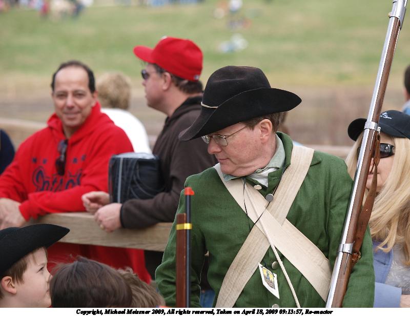 Picture #135: Re-enactor 800x616, 65,208 bytes (64K), (html file) Copyright, Michael Meissner 2009, All rights reserved Olympus E-3 camera with Olympus 50-200mm f/2.8-3.5 lens f/3.5, ISO 100, 1/400 sec, 104.0mm, auto mode, natural color, matrix metering, IS1 (All Direction Shake IS) 35mm equivalent focal length 208.0mm Programs used: gimp Taken by Michael Meissner on April 18, 2009 08:06:32 Last modified on April 23, 2009 at 08:47 |
