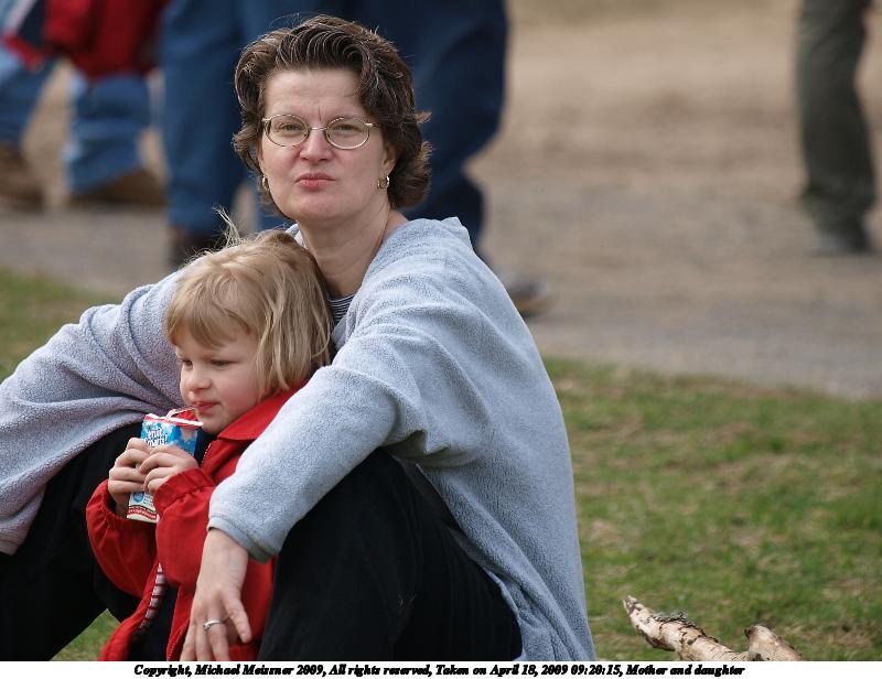 Picture #78: Mother and daughter 800x616, 80,123 bytes (79K), (html file) Copyright, Michael Meissner 2009, All rights reserved Olympus E-3 camera with Olympus 50-200mm f/2.8-3.5 lens f/3.5, ISO 100, 1/320 sec, 200.0mm, auto mode, natural color, matrix metering, bias 0.3, IS1 (All Direction Shake IS) 35mm equivalent focal length 401.0mm Programs used: gimp Taken by Michael Meissner on April 18, 2009 09:20:15 Last modified on April 27, 2009 at 22:48 |
