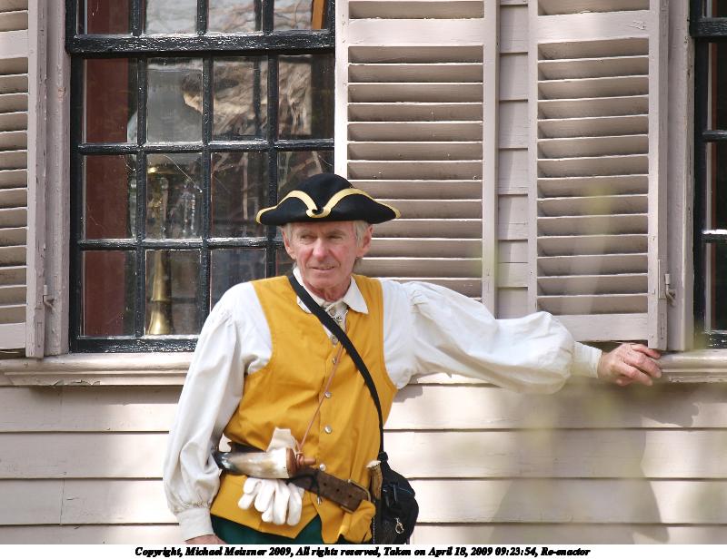 Picture #17: Colonial officer 800x616, 91,764 bytes (90K), (html file) Copyright, Michael Meissner 2009, All rights reserved Olympus E-3 camera with Olympus 50-200mm f/2.8-3.5 lens and Olympus EC-14 (1.4x) f/4.5, ISO 100, 1/320 sec, 112.0mm, auto mode, natural color, matrix metering, IS1 (All Direction Shake IS) 35mm equivalent focal length 224.0mm, EC-14 Programs used: gimp Taken by Michael Meissner on April 18, 2009 13:49:57 Last modified on May 14, 2009 at 00:00 |