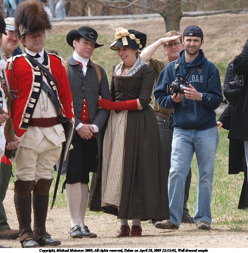 Picture #62: Well dressed couple 800x816, 125,090 bytes (123K), (html file) Copyright, Michael Meissner 2009, All rights reserved Olympus E-3 camera with Olympus 50-200mm f/2.8-3.5 lens and Olympus EC-14 (1.4x) f/4.5, ISO 100, 1/320 sec, 153.0mm, auto mode, natural color, matrix metering, IS1 (All Direction Shake IS) 35mm equivalent focal length 307.0mm, EC-14 Programs used: gimp Taken by Michael Meissner on April 18, 2009 12:32:02 Last modified on May 04, 2009 at 22:31 |