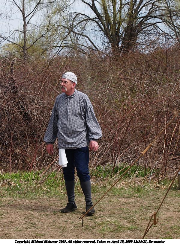 Picture #77: Re-enactor #4 800x616, 96,072 bytes (94K), (html file) Copyright, Michael Meissner 2009, All rights reserved Olympus E-3 camera with Olympus 50-200mm f/2.8-3.5 lens f/3.5, ISO 100, 1/250 sec, 200.0mm, auto mode, natural color, matrix metering, bias 0.3, IS1 (All Direction Shake IS) 35mm equivalent focal length 401.0mm Programs used: gimp Taken by Michael Meissner on April 18, 2009 09:23:54 Last modified on April 27, 2009 at 22:50 |