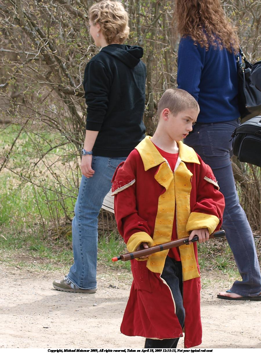 Picture #61: Not your typical red-coat 900x1216, 204,965 bytes (201K), (html file) Copyright, Michael Meissner 2009, All rights reserved Olympus E-3 camera with Olympus 50-200mm f/2.8-3.5 lens and Olympus EC-14 (1.4x) f/5.0, ISO 100, 1/250 sec, 70.0mm, auto mode, natural color, matrix metering, IS1 (All Direction Shake IS) 35mm equivalent focal length 140.0mm, EC-14 Programs used: gimp Taken by Michael Meissner on April 18, 2009 12:35:15 Last modified on May 04, 2009 at 22:33 |