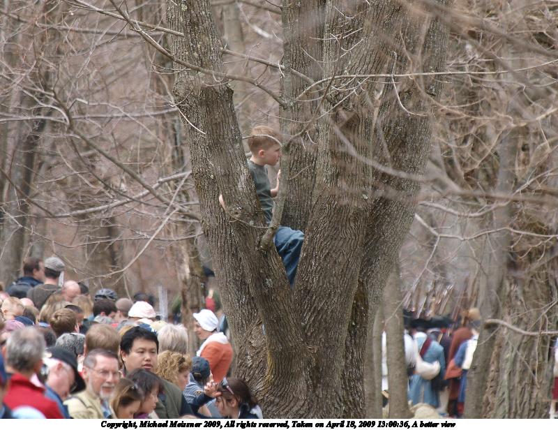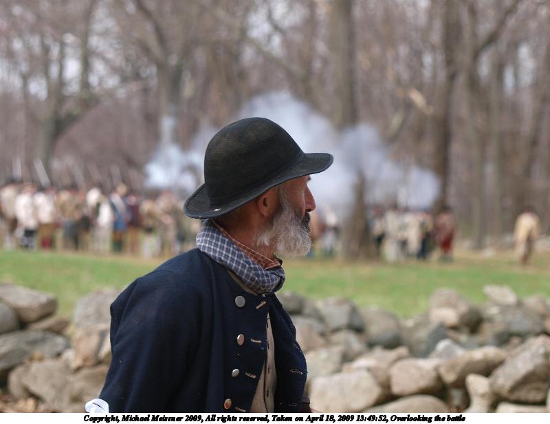Picture #18: Overlooking the battle 800x616, 63,875 bytes (63K), (html file) Copyright, Michael Meissner 2009, All rights reserved Olympus E-3 camera with Olympus 50-200mm f/2.8-3.5 lens and Olympus EC-14 (1.4x) f/4.0, ISO 100, 1/200 sec, 90.0mm, auto mode, natural color, matrix metering, IS1 (All Direction Shake IS) 35mm equivalent focal length 180.0mm, EC-14 Programs used: gimp Taken by Michael Meissner on April 18, 2009 13:49:52 Last modified on May 13, 2009 at 23:58 |