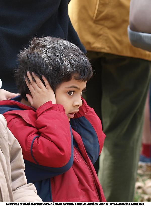 Picture #11: Make the noises stop 600x816, 75,034 bytes (74K), (html file) Copyright, Michael Meissner 2009, All rights reserved Olympus E-3 camera with Olympus 50-200mm f/2.8-3.5 lens f/3.2, ISO 100, 1/160 sec, 50.0mm, auto mode, natural color, matrix metering, IS1 (All Direction Shake IS) 35mm equivalent focal length 100.0mm Programs used: gimp Taken by Michael Meissner on April 18, 2009 13:59:12 Last modified on May 14, 2009 at 00:09 |