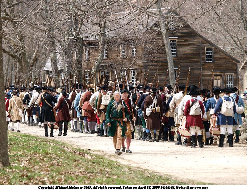 Picture #117: This way to the battle 800x616, 111,781 bytes (110K), (html file) Copyright, Michael Meissner 2009, All rights reserved Olympus E-3 camera with Olympus 50-200mm f/2.8-3.5 lens f/4.0, ISO 100, 1/320 sec, 200.0mm, auto mode, natural color, matrix metering, bias 0.3, IS1 (All Direction Shake IS) 35mm equivalent focal length 401.0mm Programs used: gimp Taken by Michael Meissner on April 18, 2009 08:56:05 Last modified on April 24, 2009 at 07:56 |