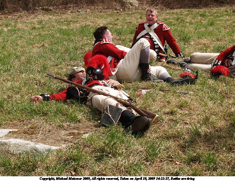 Picture #29: Battles are tiring 800x616, 212,089 bytes (208K), (html file) Copyright, Michael Meissner 2009, All rights reserved Olympus E-1 camera with Olympus 14-54mm f/2.8-3.5 lens and Olympus EC-14 (1.4x) f/8.0, ISO 100, 1/250 sec, 38.0mm, auto mode, SHQ, matrix metering, bias 0.3, +2 contrast, +2 sharpening 35mm equivalent focal length 76.0mm, EC-14 Programs used: gimp Taken by Michael Meissner on April 18, 2009 14:21:27 Last modified on May 11, 2009 at 22:47 |
