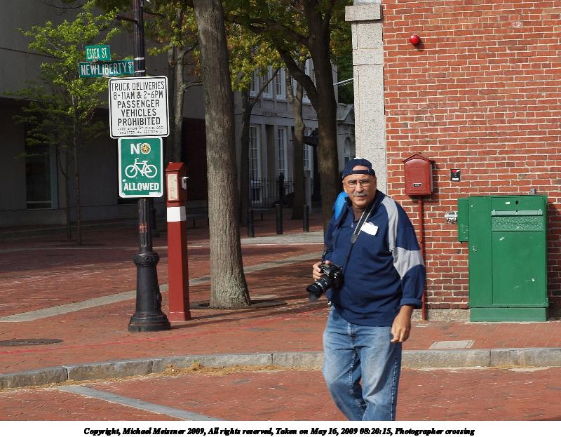 Picture #6: Photographer crossing Thumb: 400x300, 60,852 bytes (60K) Small: 800x623, 136,880 bytes (134K), (html file) Copyright, Michael Meissner 2009, All rights reserved Olympus E-620 camera with Olympus 14-42mm lens f/9.0, ISO 200, 1/250 sec, 42.0mm, auto mode, natural color, matrix metering, IS1 (All Direction Shake IS), noise reduction auto 35mm equivalent focal length 84.0mm Programs used: gimp Taken by Michael Meissner on May 16, 2009 08:20:15 Last modified on May 21, 2009 at 22:24 |