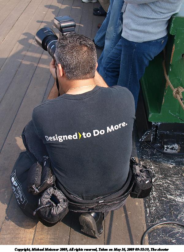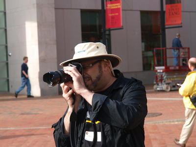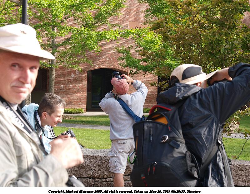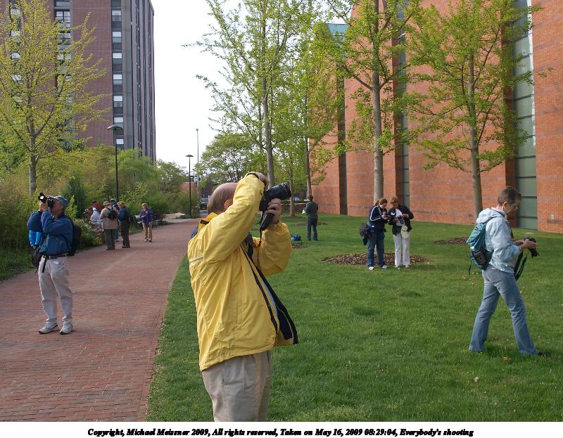 Picture #30: Everybody's shooting Thumb: 400x300, 62,022 bytes (61K) Small: 800x623, 153,261 bytes (150K), (html file) Copyright, Michael Meissner 2009, All rights reserved Olympus E-3 camera with Olympus 14-54mm f/2.8-3.5 lens f/5.0, ISO 100, 1/250 sec, 14.0mm, auto mode, natural color, matrix metering, IS1 (All Direction Shake IS) 35mm equivalent focal length 28.0mm Programs used: gimp Taken by Michael Meissner on May 16, 2009 08:29:04 Last modified on May 22, 2009 at 08:11 |