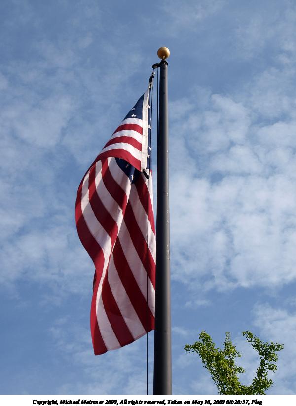 Picture #60: Flag #2 Thumb: 450x338, 58,577 bytes (58K) Small: 900x698, 105,215 bytes (103K), (html file) Copyright, Michael Meissner 2009, All rights reserved Olympus E-3 camera with Olympus 70-300mm f/4.0-5.6 lens and Olympus EC-14 (1.4x) f/7.1, ISO 100, 1/400 sec, 170.0mm, auto mode, vivid color, matrix metering, continous focus, IS1 (All Direction Shake IS) 35mm equivalent focal length 341.0mm, EC-14 Programs used: gimp Taken by Michael Meissner on May 16, 2009 09:15:07 Last modified on May 24, 2009 at 01:08 |