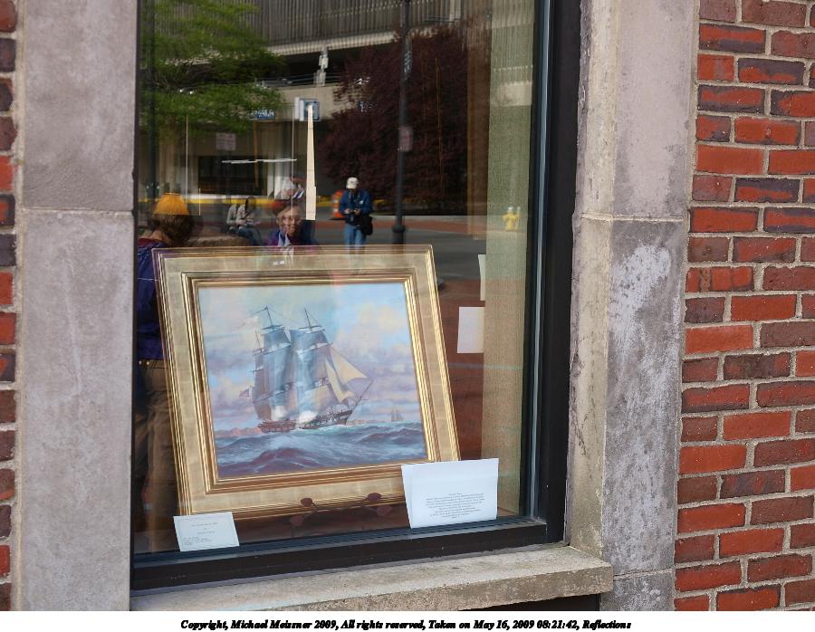 Picture #39: Reflections #6 Thumb: 450x338, 68,385 bytes (67K) Small: 900x698, 132,521 bytes (130K), (html file) Copyright, Michael Meissner 2009, All rights reserved Olympus E-3 camera with Olympus 14-54mm f/2.8-3.5 lens f/3.5, ISO 100, 1/100 sec, 41.0mm, auto mode, natural color, matrix metering, IS1 (All Direction Shake IS) 35mm equivalent focal length 82.0mm Programs used: gimp Taken by Michael Meissner on May 16, 2009 08:44:53 Last modified on May 22, 2009 at 08:44 |