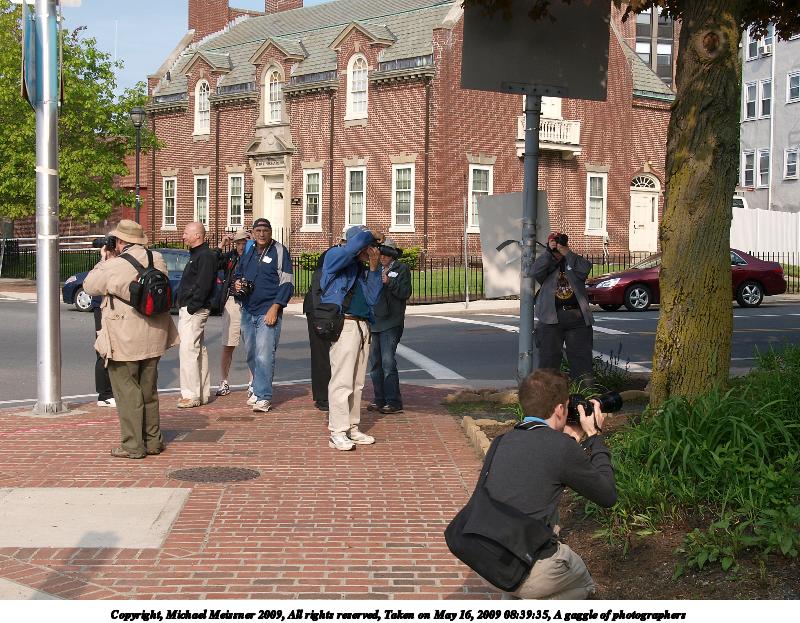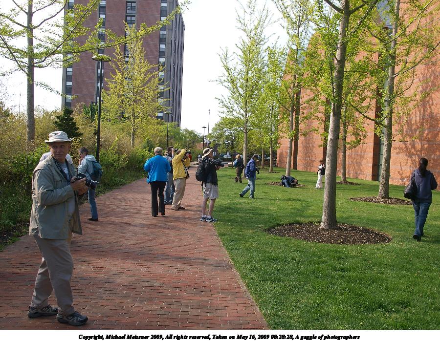 Picture #36: A gaggle of photographers #2 Thumb: 400x300, 64,204 bytes (63K) Small: 800x623, 162,209 bytes (159K), (html file) Copyright, Michael Meissner 2009, All rights reserved Olympus E-3 camera with Olympus 14-54mm f/2.8-3.5 lens f/6.3, ISO 100, 1/320 sec, 23.0mm, auto mode, natural color, matrix metering, IS1 (All Direction Shake IS) 35mm equivalent focal length 46.0mm Programs used: gimp Taken by Michael Meissner on May 16, 2009 08:39:35 Last modified on May 22, 2009 at 08:33 |