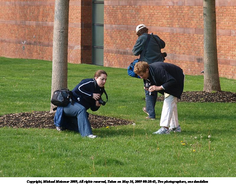 Picture #29: Two photographers, one dandelion Thumb: 400x300, 61,313 bytes (60K) Small: 800x623, 172,730 bytes (169K), (html file) Copyright, Michael Meissner 2009, All rights reserved Olympus E-3 camera with Olympus 14-54mm f/2.8-3.5 lens f/4.5, ISO 100, 1/200 sec, 52.0mm, auto mode, natural color, matrix metering, IS1 (All Direction Shake IS) 35mm equivalent focal length 104.0mm Programs used: gimp Taken by Michael Meissner on May 16, 2009 08:28:43 Last modified on May 22, 2009 at 08:07 |