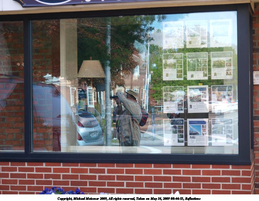 Picture #18: Capturing reflections Thumb: 450x338, 67,452 bytes (66K) Small: 900x698, 150,229 bytes (147K), (html file) Copyright, Michael Meissner 2009, All rights reserved Olympus E-620 camera with Olympus 14-42mm lens f/5.6, ISO 200, 1/160 sec, 18.0mm, auto mode, natural color, matrix metering, IS1 (All Direction Shake IS), noise reduction auto 35mm equivalent focal length 36.0mm Programs used: gimp Taken by Michael Meissner on May 16, 2009 08:22:29 Last modified on May 21, 2009 at 22:51 |