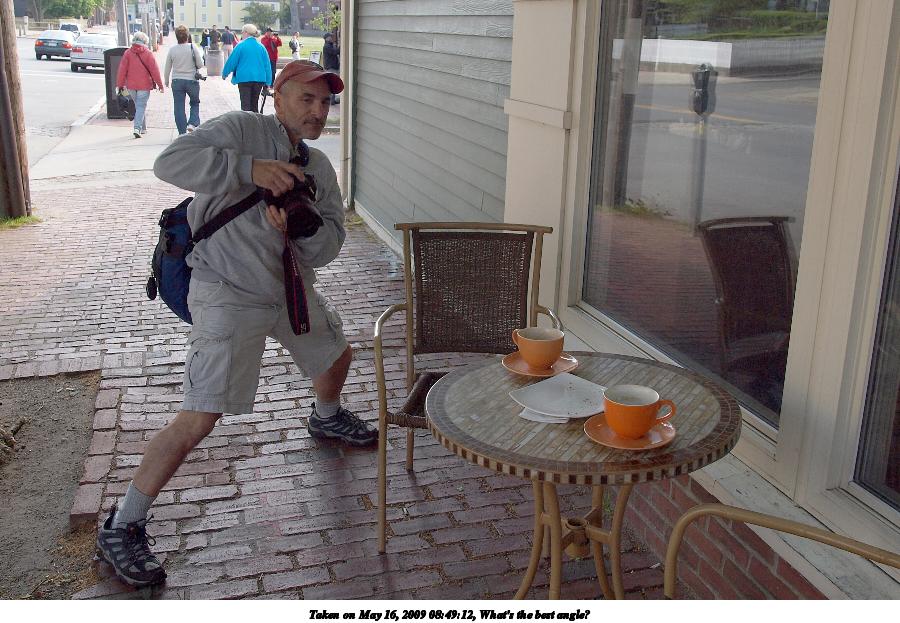 Picture #42: What's the best angle? Thumb: 450x300, 45,729 bytes (45K) Small: 900x623, 125,195 bytes (123K), (html file) Olympus E-620 camera with Olympus 14-54mm f/2.8-3.5 lens f/5.6, ISO 200, 1/250 sec, 17.0mm, auto mode, natural color, matrix metering, IS1 (All Direction Shake IS), noise reduction auto 35mm equivalent focal length 34.0mm Programs used: gimp Taken by Michael Meissner on May 16, 2009 08:49:12 Last modified on May 24, 2009 at 08:46 |